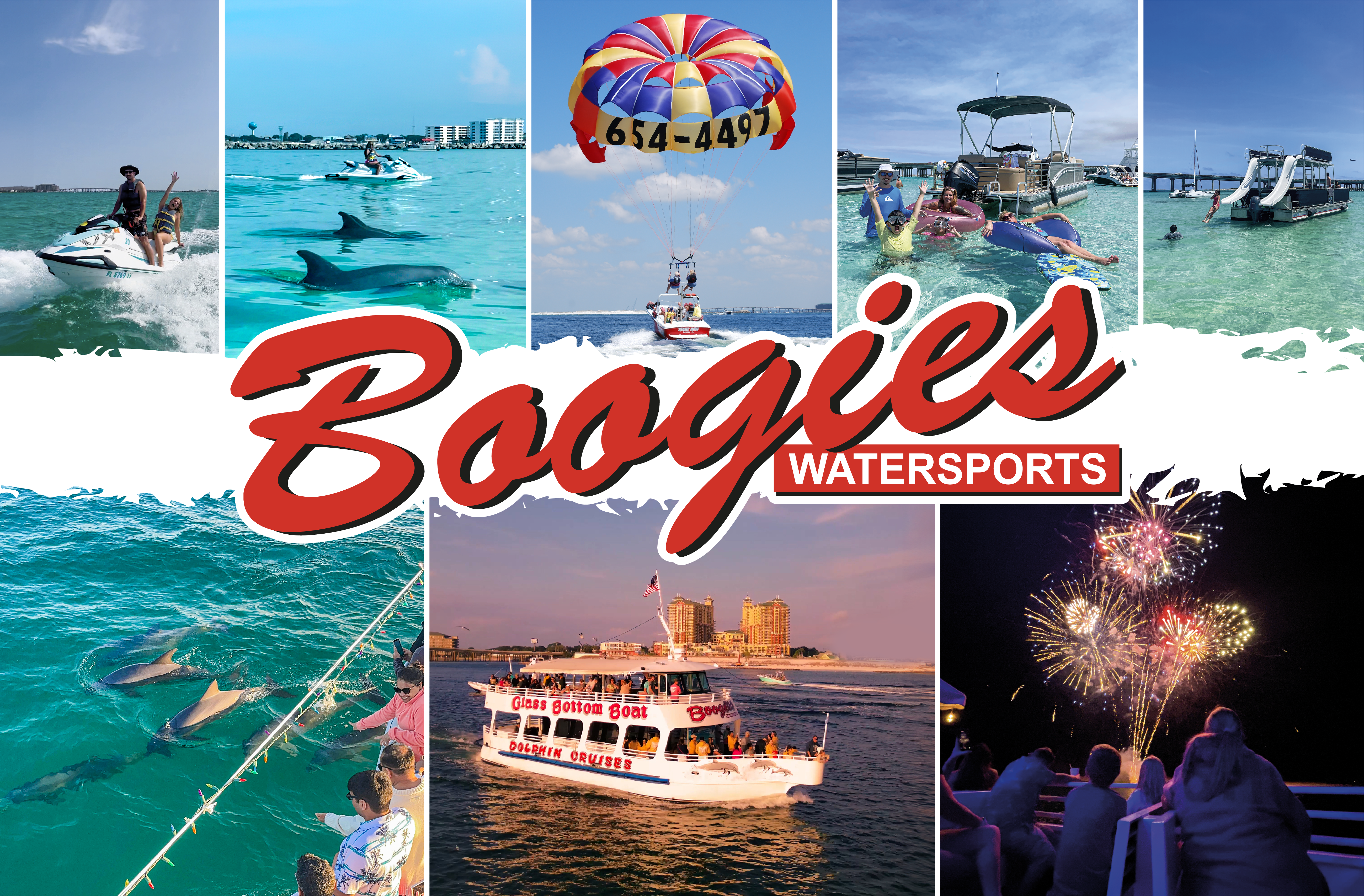 A Destin staple in HarborWalk Village since 1991, Boogies Watersports is your premier gateway to the famous emerald waters of Crab Island. Whether you want to captain your own adventure with a pontoon rental (available in single or double-deckers with slides) or prefer a guided Jet Ski Dolphin Tour, Boogies offers the most iconic ways to experience Destin’s favorite sandbar. We also offer parasailing, glass-bottom boat dolphin cruises, and captain services for pontoon boats, giving you even more ways to enjoy your time on the water. From soaring high above the Gulf to relaxing cruises and fully guided experiences, everything you need for an unforgettable day is right here. Use the discount code RVBOOGIES at checkout to receive 10% off your booking.